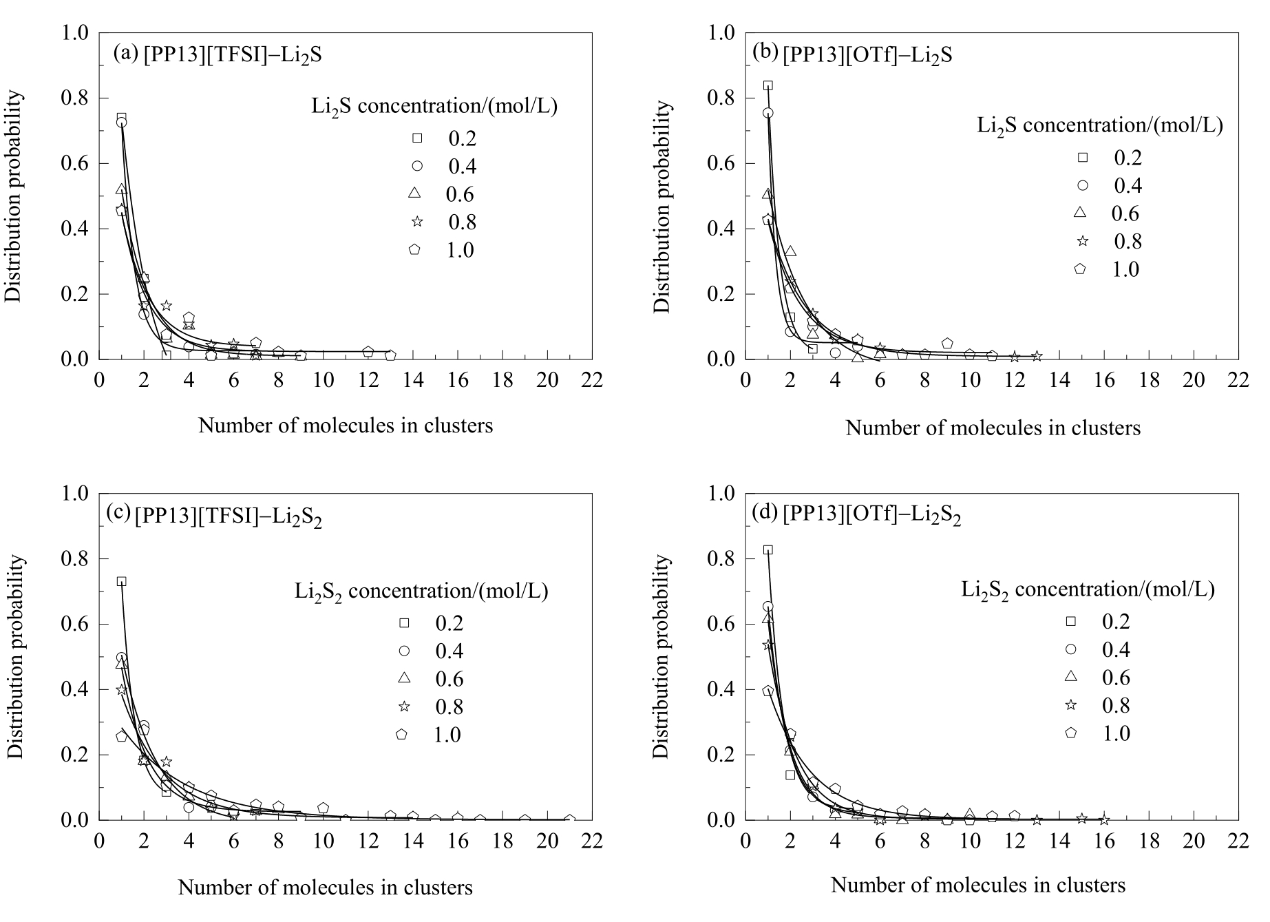 | 图6 不同短链多硫化物浓度下离子液体-Li2S/Li2S2体系中短链多硫化物团簇的尺寸分布 |