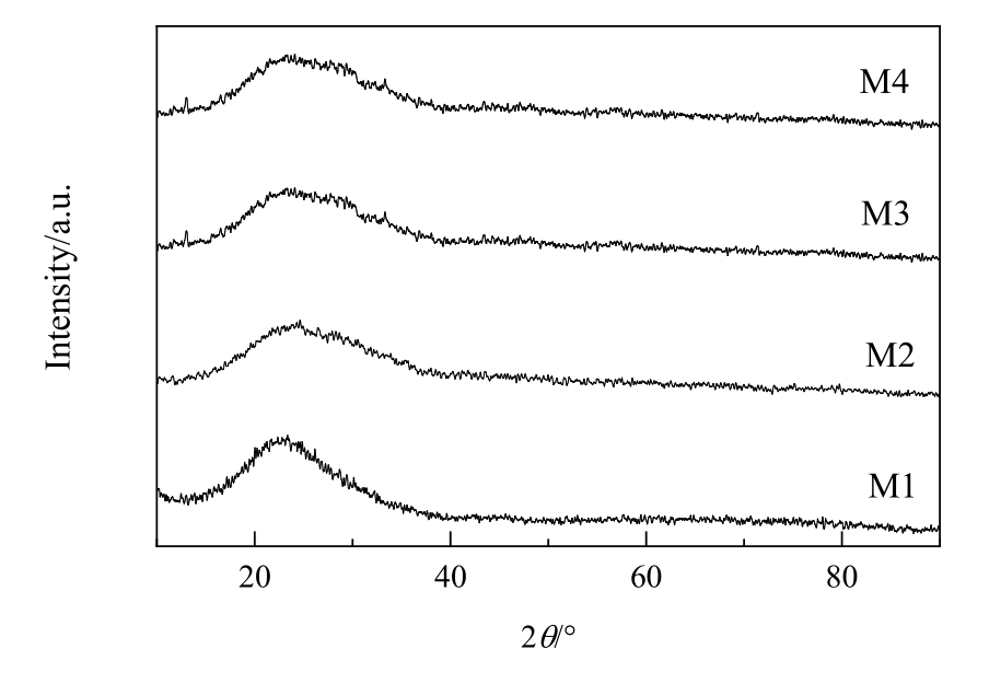 | Fig.2 The wide angle XRD patterns of catalysts with different Al contents |